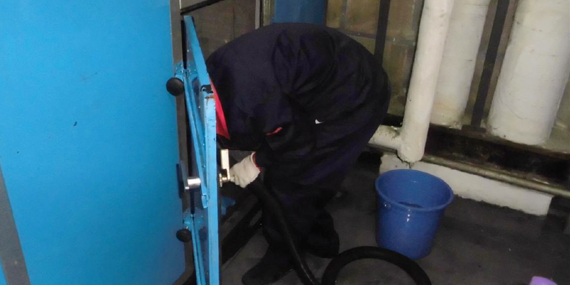 在這特殊時(shí)期,我們清洗作業(yè)人員的專業(yè)防護(hù)措施,也一樣不會(huì)少。我們負(fù)責(zé)清洗的維保技師也是全副武裝,除了平時(shí)需要規(guī)范的安全防護(hù)外,疫情期間也特別做了嚴(yán)格的衛(wèi)生防護(hù)措施,嚴(yán)格佩戴諸如口罩、護(hù)目鏡、手套、防護(hù)服等,并在出發(fā)前每天測(cè)量體溫,記錄體溫變化。